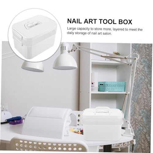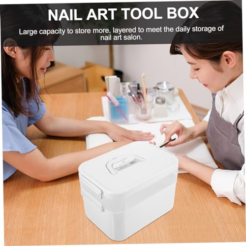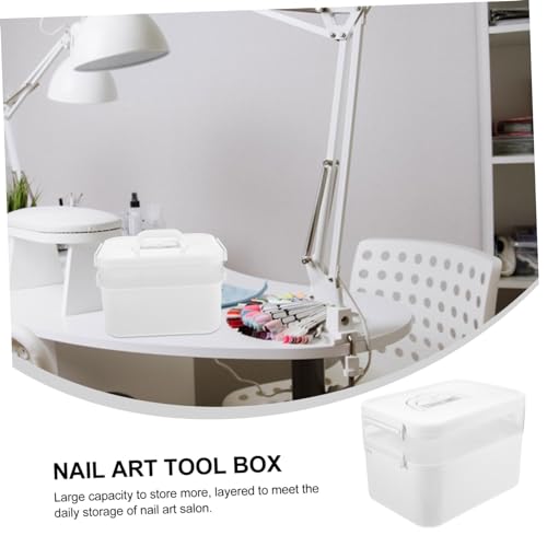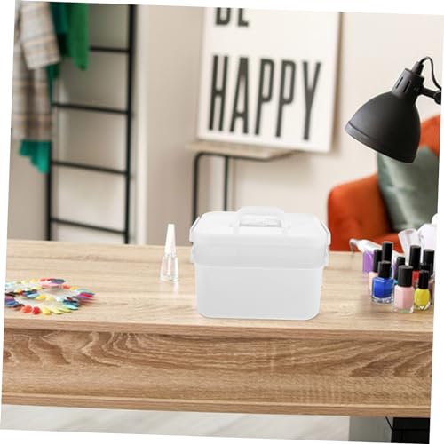 FOMIYES - فوميز. صندوق تخزين بلاستيكي للاظافر، صندوق تخزين بلاستيكي لتخزين مستحضرات التجميل والسفر والمكياج والمانيكير والاظافر من البولي بروبيلين، ابيض، قطعة واحدة