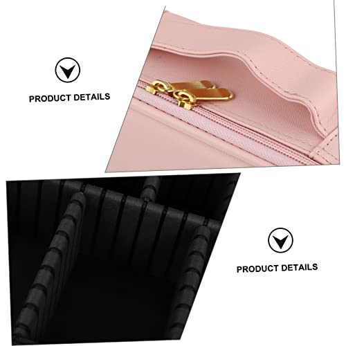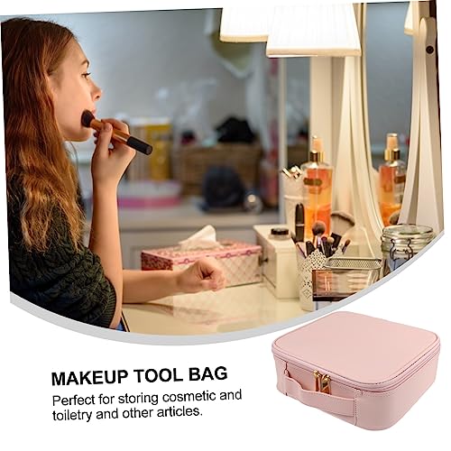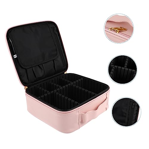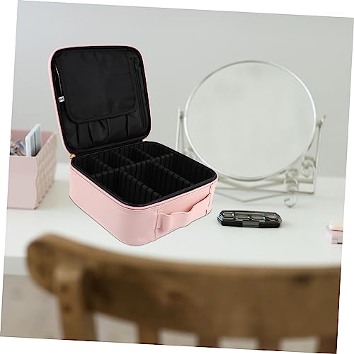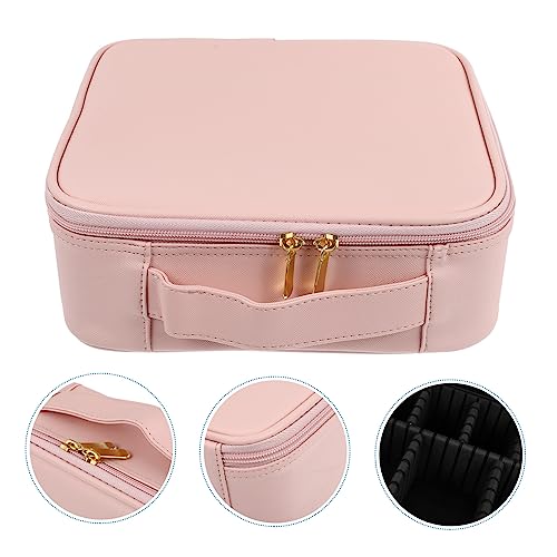 FOMIYES - فوميز. شنطة مستحضرات تجميل محمولة للسفر من جلد البولي يوريثين مزودة بسحاب لتخزين وتنظيم المجوهرات وفرش المكياج، قطعة واحدة، لون زهري
