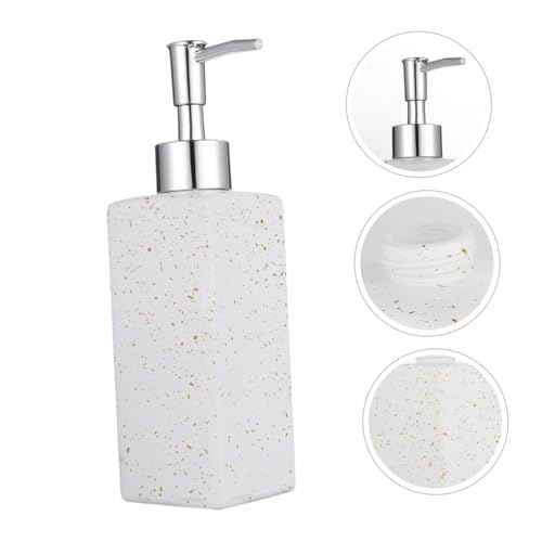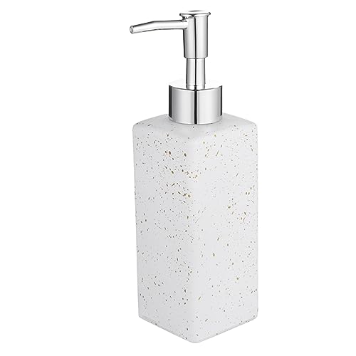 - لوشن السفر -- المادة - موزع صابون الأطباق هذا المصنوع من السيراميك، مع مضخة من الستانلس ستيل، يبدو رائعًا ويدوم طويلاً، لا يتسرب ولا يتساقط من التسربات والانسكابات.