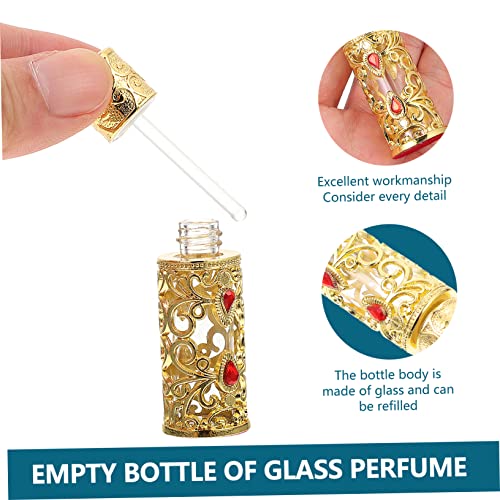 FOMIYES - فوميز. زجاجة عطر بحجم مناسب للسفر بتصميم شرق اوسطي من الزجاج الكهرماني مع قطارة سعة 3 مل، زجاجة عطر فارغة محمولة من قطعة واحدة