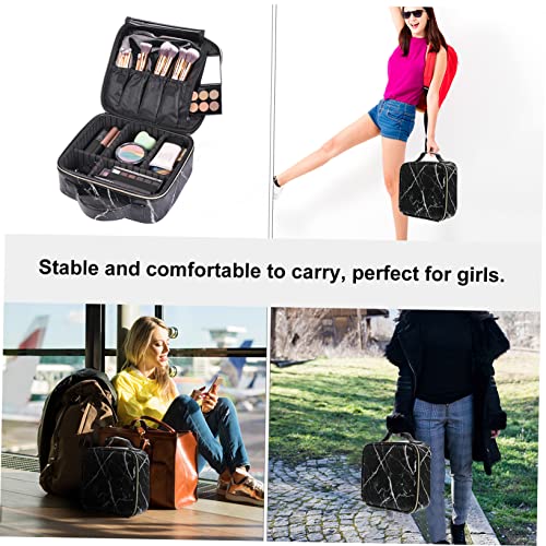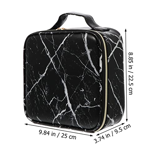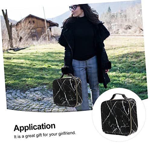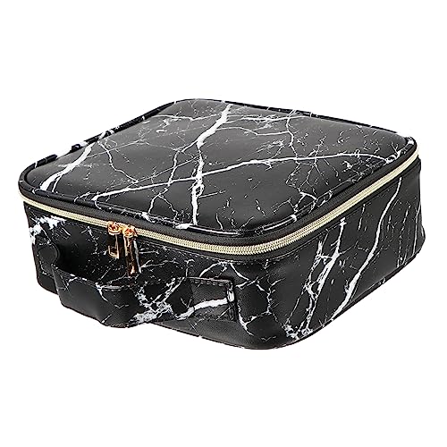 FOMIYES - فوميز. شنطة مستحضرات تجميل رخامية للنساء من قطعة واحدة، شنط منظمة للسفر والفتيات، شنطة ادوات الزينة للسفر، شنطة مكياج محمولة وانيقة، شنطة مكياج معدنية سوداء للعربات والمكياج، اسود