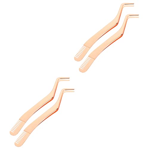 FOMIYES - ملقاط رموش 2 في 1 من 4 قطع من ملاقط الرموش مع مشط وأدوات تجميل من الفولاذ المقاوم للصدأ وملقط رموش ومشط من فوميز