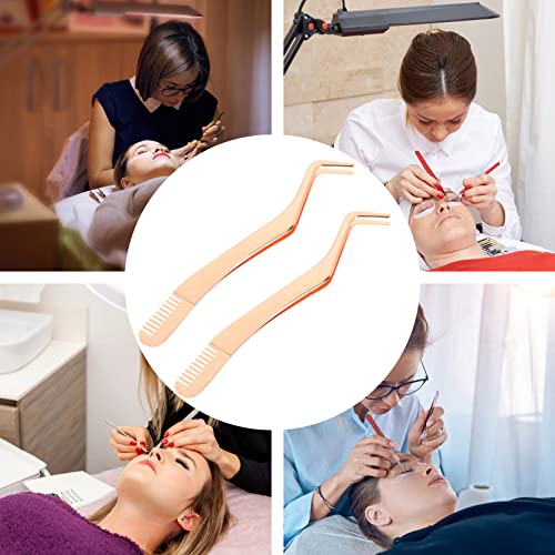 FOMIYES - فوميز. ملقاط وصلات الرموش من قطعتين - ملاقط لوضع الرموش ومشط وملاقط رموش من الستانلس ستيل