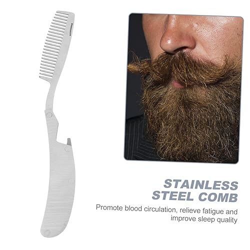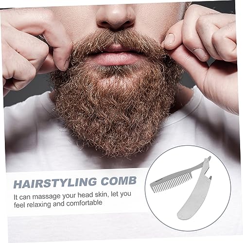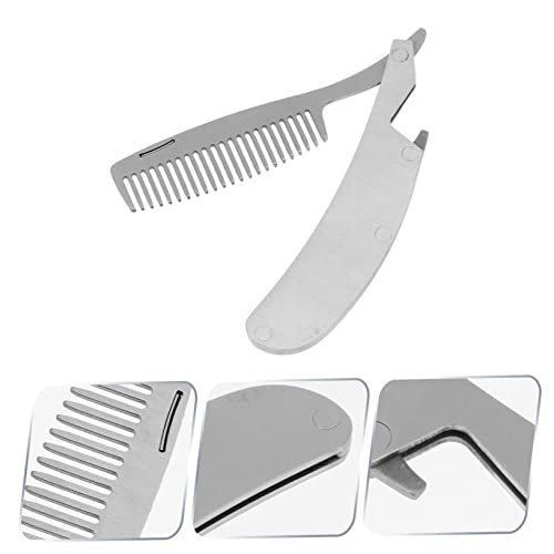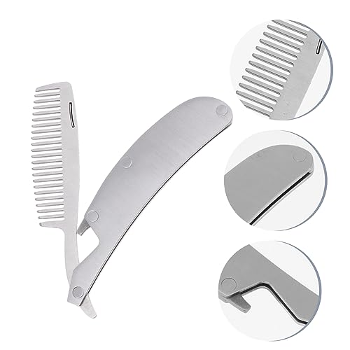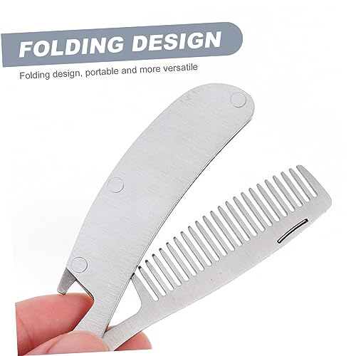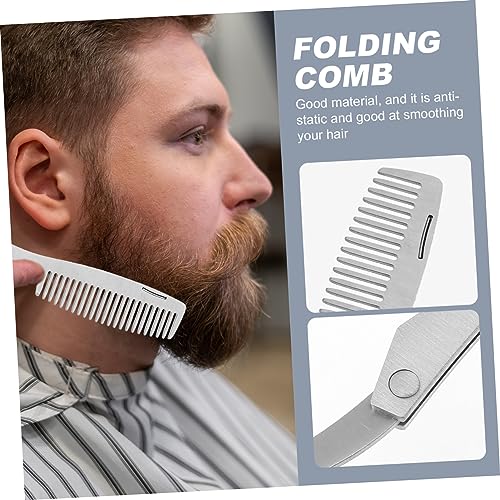 FOMIYES - فوميز. مشط قابل للطي من الستانلس ستيل، مشط لحية الرجال من الستانلس ستيل، مشط تصفيف الشعر، مشط جيب للرجال متعدد الوظائف، مشط محمول للرجال