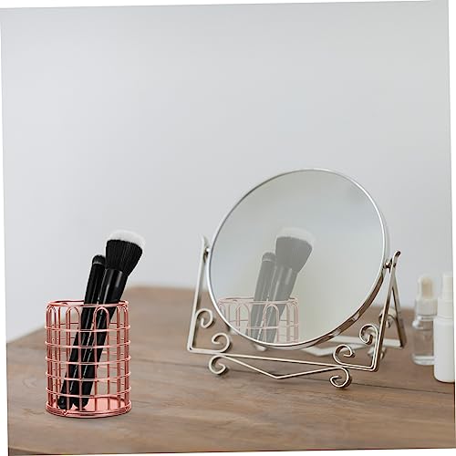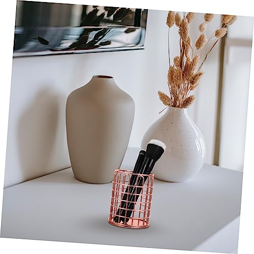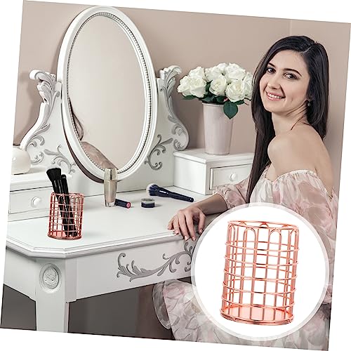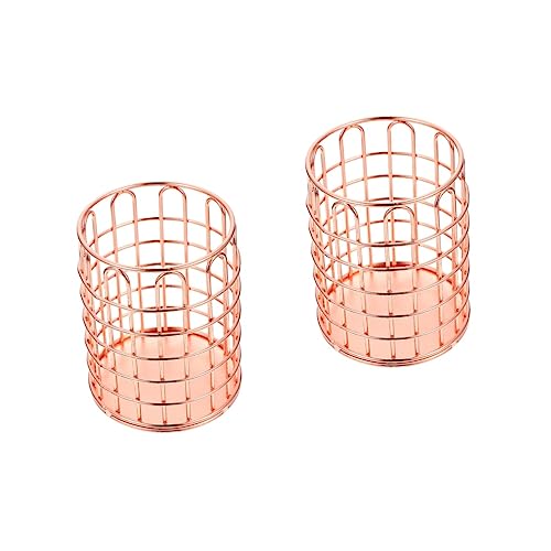 FOMIYES - فوميز. قطعتان من دلو تخزين فرش المكياج، رف تخزين معدني، منظم مكتبي، صندوق منظم مكياج وحامل فرش المكياج، حاويات مكتبية، حامل اقلام سلكي معدني، صندوق مستحضرات تجميل ذهبي من الحديد