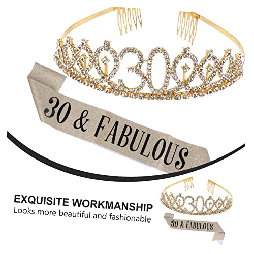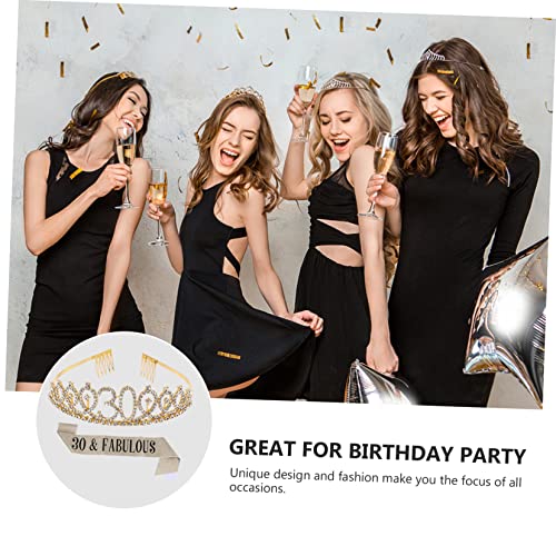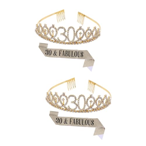 FOMIYES - فوميز. مجموعتان من قطعتين حزام احتفالي على شكل تاج لعيد الميلاد الثلاثين وعيد الميلاد الثلاثين، وشاح عيد ميلاد الملكة وشاح عيد الميلاد الثلاثين وشاح عيد ميلاد سعيد للنساء، زينة عيد ميلاد كريستال، قطعة