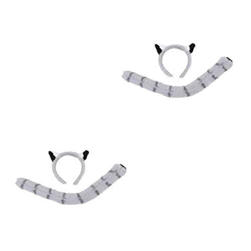 FOMIYES - مجموعة فوميز مكونة من قطعتين من شريط رأس على شكل ذيل حيوانات، اكسسوارات شعر، أزياء الهالوين، عصابة رأس وأذني الراكون والذيل؛ مجموعة زي حيوانات للبالغين للبنات