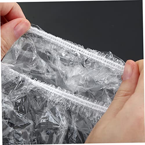 - قبعة استحمام للاستعمال مرة واحدة -- يمكن أن تناسب الاستحمام والطبخ والمنتجعات الصحية وشعرك جيدًا أو يمكن استخدامها لربط الشعر عند وضع المكياج وتنظيف الوجه وما إلى ذلك.