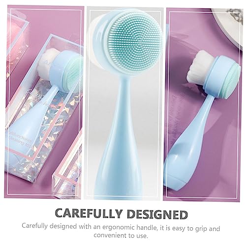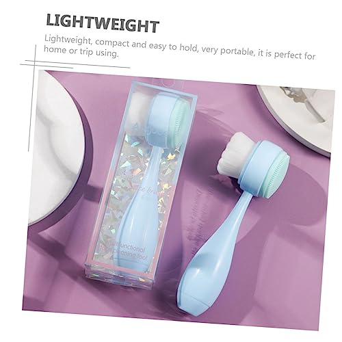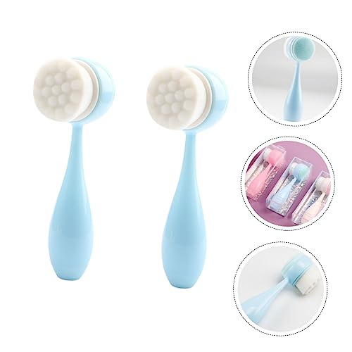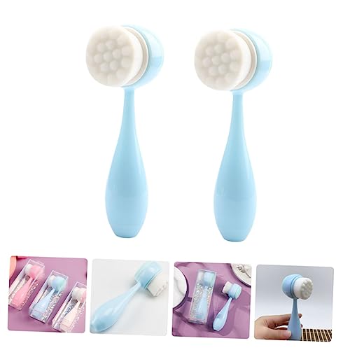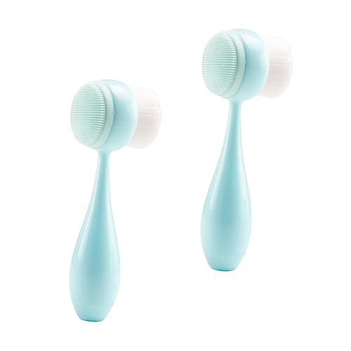 FOMIYES - فوميز. قطعتان من فرشاة تنظيف الوجه مزدوجة الجوانب، فرشاة سيليكون لتنظيف الوجه، فرشاة تنظيف الوجه على الوجهين، فرشاة تنظيف الوجه، فرشاة تنظيف الوجه، فرشاة تقشير المسام، لون ازرق