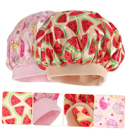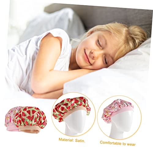 FOMIYES - فوميز. قبعات نوم بشريط مطاطي قابل للتعديل من الساتان للفتيات الصغيرات للشعر المجعد للنوم، قبعات استحمام كبيرة للاطفال من الحرير، قبعة استحمام للاطفال في الليل
