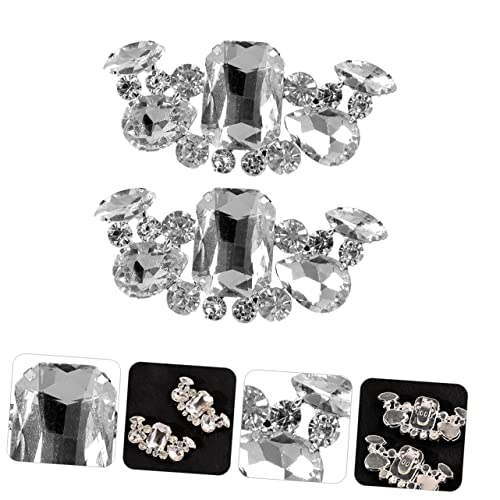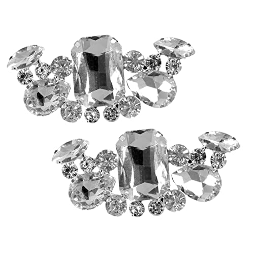 FOMIYES - فوميز. قطعتان من اكسسوارات الاحذية من حجر الراين، مشابك احذية لتزيين حفلات الزفاف، اكسسوارات الزفاف من حجر الراين، ابزيم حذاء كريستالي، مشابك زينة للاحذية، بروش للاحذية، فضي، 7 × 3 × 1 سم