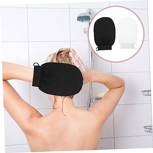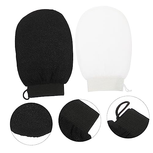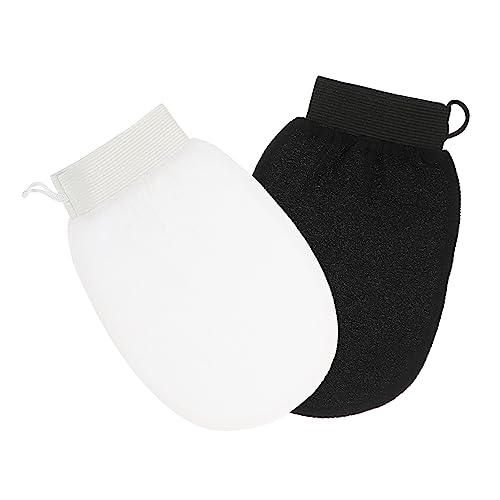 FOMIYES - قفازات تقشير البشرة للبنات من فوميز، قفازات تقشير وتقشير الجسم وتقشير الجلد الميت، ليفة حمام وقفاز حمام ومنشفة بلورية للأطفال من الرايون - 2 قطعة