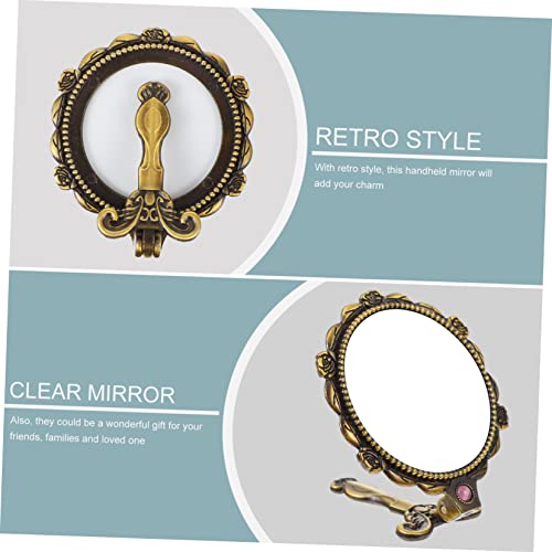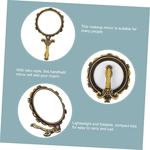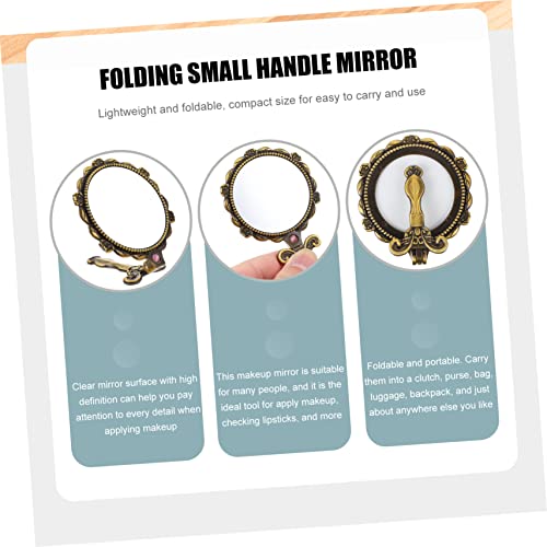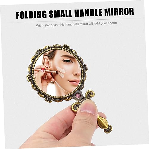 FOMIYES - فوميز. مراة يد قابلة للطي بمقبض صغير مع مقبض، مراة مكبرة محمولة للمكياج، مراة يد على شكل زهرة للنساء، مراة زجاجية منقوشة على شكل زهرة من قطعتين