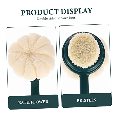 FOMIYES - فوميز. فرشاة استحمام بمقبض طويل من قطعتين، فرشاة استحمام للجسم، فرشاة تنظيف حمام مزدوجة الجوانب، فرشاة تقشير الظهر، فرشاة ظهر الحمام، فرشاة استحمام فاخرة من البولي ايثيلين بتصميم زهرة