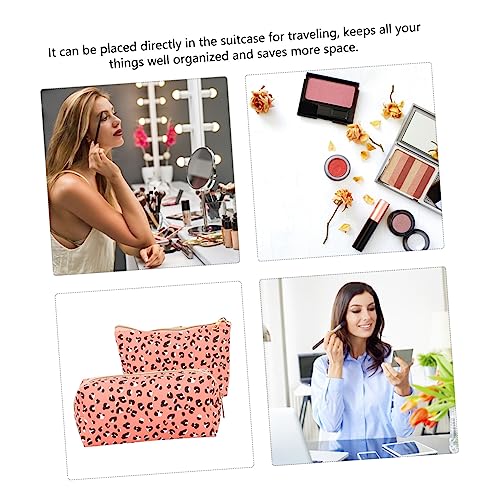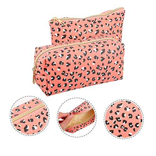 FOMIYES - فوميز. شنطة مكياج من البولي يوريثين بتصميم جلد الفهد، شنطة تخزين للسفر من قطعتين