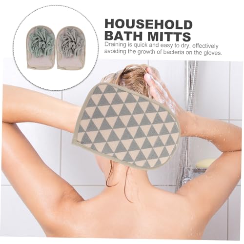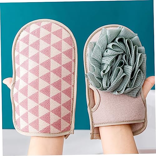 FOMIYES - فوميز. قفازات تنظيف الطين مكونة من قطعتين مع فرشاة ووسادة تقشير شبكية للحمام، قفازات حمام لتنظيف الجسم، قفازات حمام منزلية، قفاز استحمام منزلي لوازم الاستحمام، قفازات يد