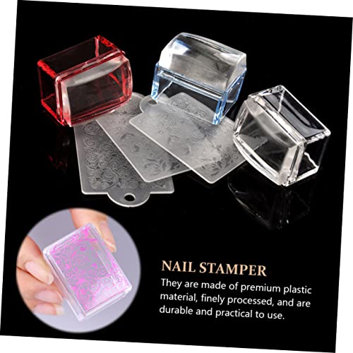 FOMIYES - فوميز. اختام مربعة الشكل للبنات من قطعتين بطباعة صورة لصالونات التجميل للنساء بتصميم ادوات العناية بالاظافر ومستلزمات المانيكير والجيلي بلاستيك بديل مكشطة ديكور لوحة العمل والجمال، ألوان متنوعة