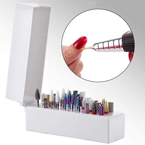 FOMIYES - فوميز. حامل رؤوس مبرد الاظافر مكون من قطعتين بـ30 فتحة، صندوق منظم للاظافر، صندوق راس ممتاز لصقل الاظافر، أبيض