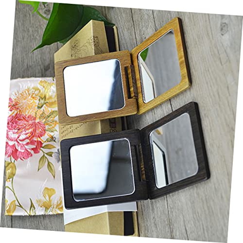 FOMIYES - فوميز. مراة مكياج رائعة للسفر من قطعتين، مراة جيب قابلة للطي للنساء، مراة جيب صغيرة محمولة باليد للمكياج، مراة يد مربعة عتيقة، مراة مستحضرات تجميل خشبية