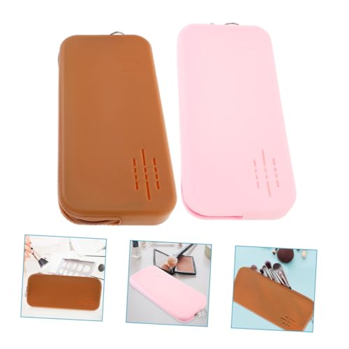 FOMIYES - فوميز. 2 قطعة من حقائب المكياج المحمولة لفرش المكياج، منظم المكياج، حقيبة تخزين المكياج، حقيبة مكياج محمولة بسحاب، حقيبة مكياج من جل السيليكا، صندوق تخزين المكياج للسفر