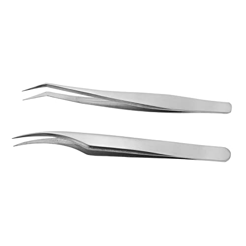 FOMIYES - فوميز. 2 قطعة من مستلزمات تشذيب الجمال من ملحقات المنزل لازالة الرموش الصناعية وملقط رموش منحنية للكوع وادوات تشذيب الحواجب الصناعية بزاوية احترافية