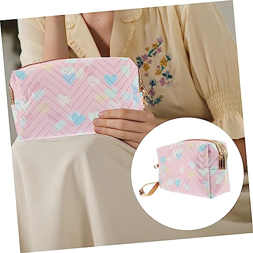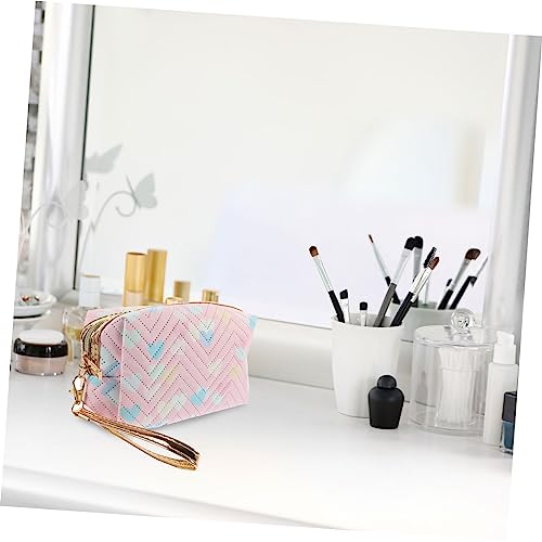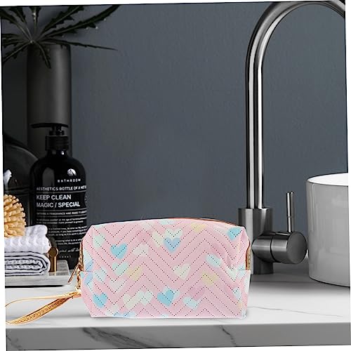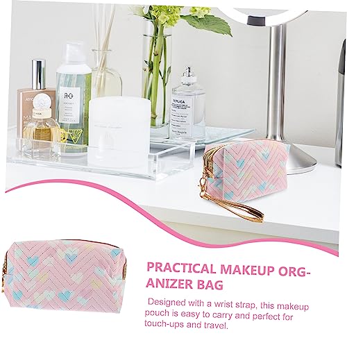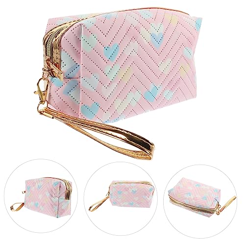 - حقائب بسحاب -- تتميز حقيبة المكياج هذه بسطح بنمط قلب، مع لون رقيق، رائعة وأنيقة للغاية، حقيبة أدوات الزينة للسفر.