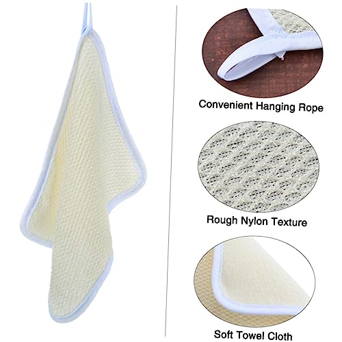 FOMIYES - فوميز. قطعتان من فرشاة تنظيف الحوض لتنظيف الوجه وتقشير الوجه من القماش الجانبي، قطعة قماش لتقشير الوجه، منشفة حمام من النايلون، بيج