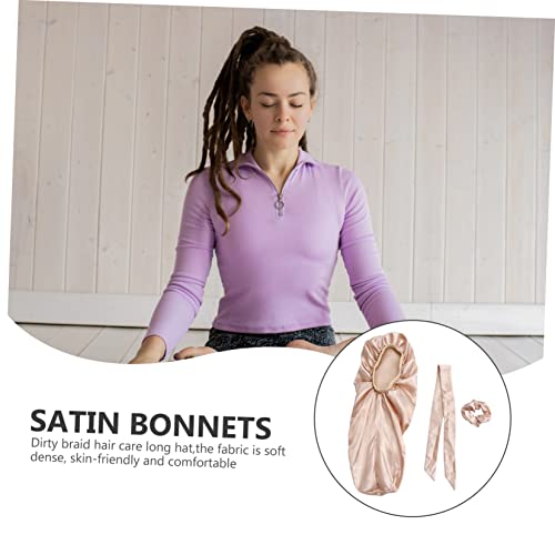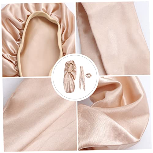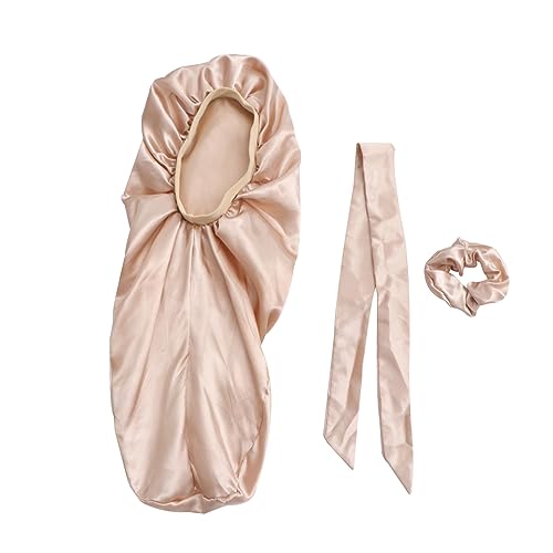 FOMIYES - فوميز. قبعة عمامة للنساء من 3 قطع من 3 قطع، قبعة حريرية ملفوفة للرأس للنوم من الساتان للنساء، قبعة نوم ليلية للنساء، قبعة استحمام كبيرة للشعر الطويل، قبعة نوم مرنة للرضاعة، ذهبي فاتح