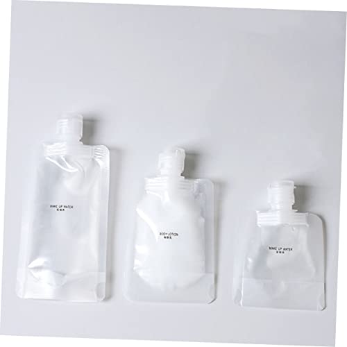 FOMIYES - فوميز. 3 مجموعات من اكياس الملل مع خلاصة مبتكرة قابلة للضغط للشفط، بلاستيك بحجم مرئي قابل لاعادة الملء، حامل فم سائل مانع للتسرب، فوهة تخزين محمولة على شكل صدفي لمستحضرات التجميل، شفاف