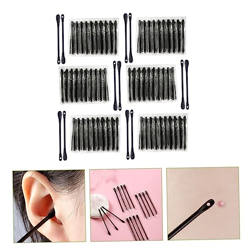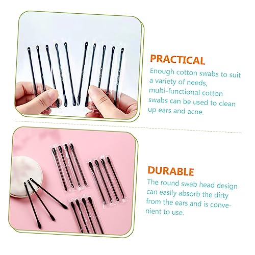 FOMIYES - أعواد قطنية للمكياج مكونة من فوميز، أعواد قطنية لتنظيف مسام الأذن، مجموعة مسحات قطنية مدببة للاستعمال مرة واحدة، أعواد قطنية مستديرة، أداة مسحات قطنية، 300 قطعة، أسود