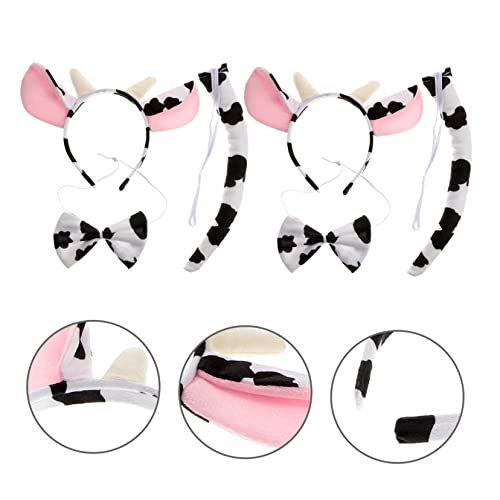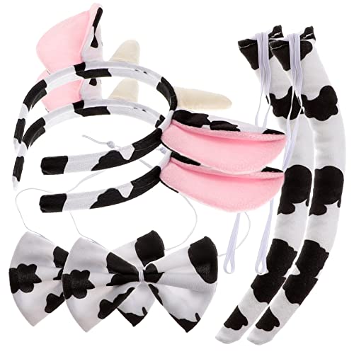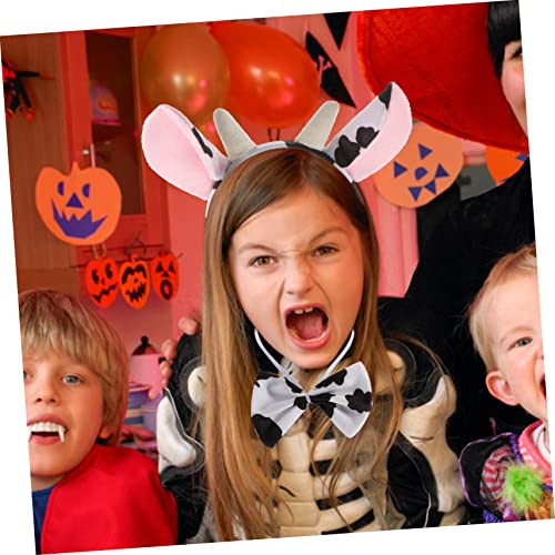 فوميز. مجموعة ربطات عنق للاطفال مكونة من 3 قطع من اكسسوارات الهالوين، اكسسوارات بطباعة بقرة وغطاء راس بقرة واكسسوارات ازياء حيوانات وذيل ملابس وقرون للاطفال وذيل الثور وبقرة