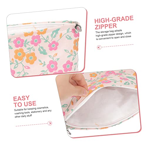 FOMIYES - فوميز. 3 قطع من حقيبة مستحضرات التجميل بجيب للعملات المعدنية، حقيبة مستحضرات التجميل، محفظة قماشية بنمط زهور، حقيبة مكياج بسحاب للنساء، حقائب عملات معدنية محمولة، صندوق تخزين من القماش