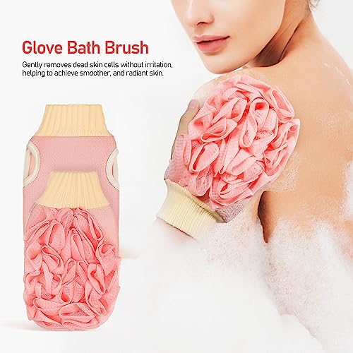 FOMIYES - قفازات تقشير للتقشير من 3 قطع، قفازات فرك الاستحمام، قفازات تقشير للاستحمام باللون الزهري، كما هو موضح، مقاس M، رياضي