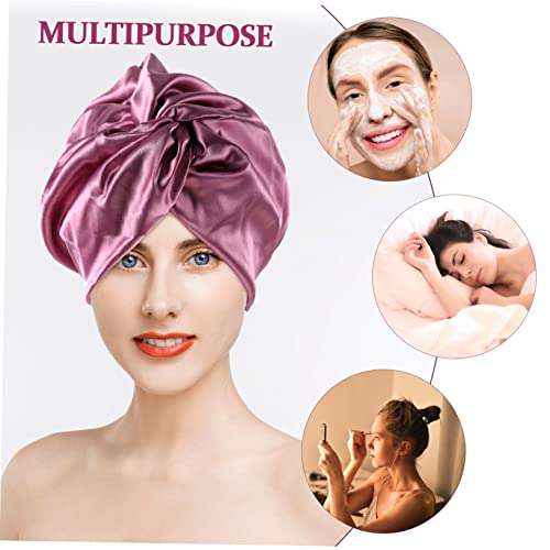 FOMIYES - فوميز. 3 قطع بونيهات مزدوجة الطبقات للنساء، قبعات استحمام مضحكة للنساء، قبعات بونيهات شعر من الحرير المقلد لقبعة النوم، ميس بيربل محمولة