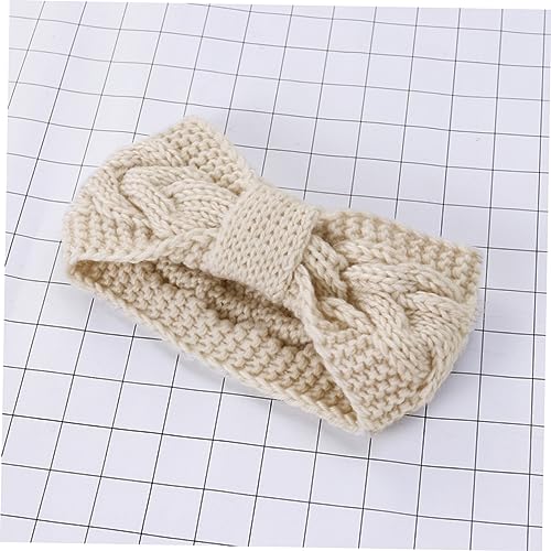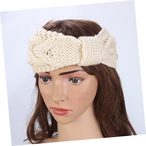 FOMIYES - فوميز. 3 قطع من قبعة صغيرة فارغة على شكل جمجمة للنساء، شريط راس مضفر مرن محبوك من الصوف الكروشيه لتدفئة الراس في الشتاء، شريط راس كروشيه ملتف ابيض