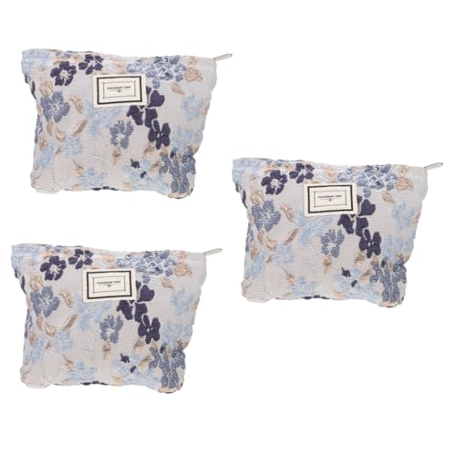 FOMIYES - فوميز. 3 قطع حقيبة مكياج بتصميم زهور فينتاج يجب اقتناؤها، محفظة زهور، حقيبة مكياج صغيرة، محافظ زرقاء للنساء، حقائب مستحضرات التجميل للنساء من البوليستر للسفر والزهور والهاتف الخلوي