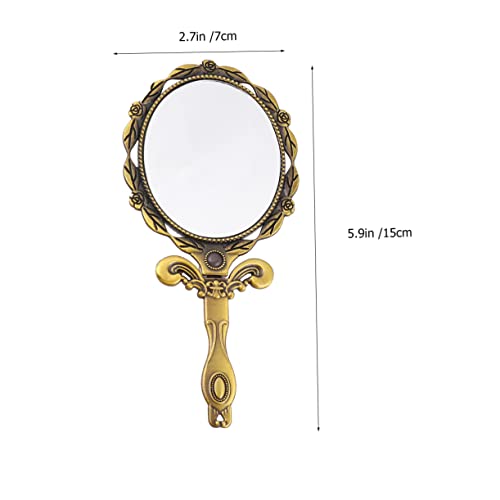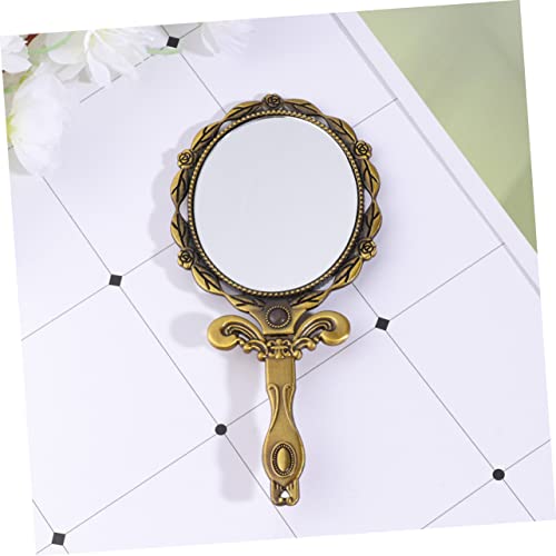 - مرآة فانيتي محمولة باللون الذهبي -- مرآة يد عتيقة مع مقبض خلفي من الألومنيوم لتصميم الحرف اليدوية اليدوية أو صنع العلامات.