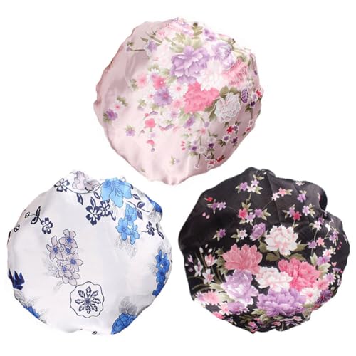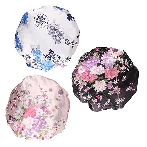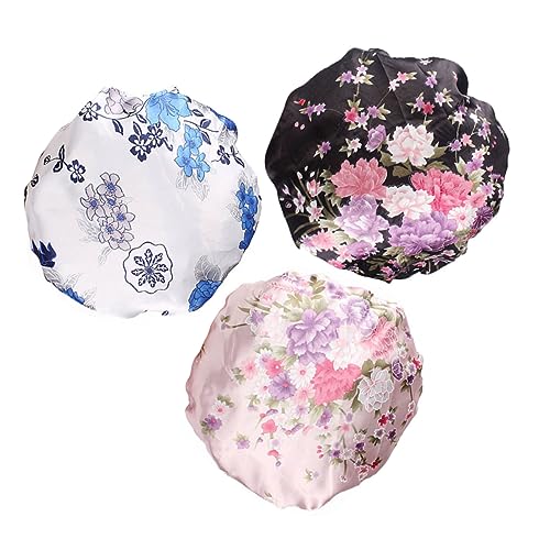 FOMIYES - فوميز. قبعة نوم حريرية للنساء من 3 قطع، بونيه حريري مرن للشعر المجعد، قبعات جانبية واسعة لتساقط الشعر، قبعة للنساء مطبوعة من الساتان قبعة كبيرة للنساء