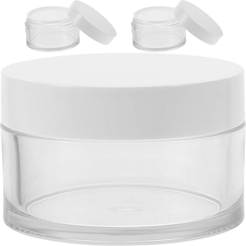 - ✅✅【برطمان كريمات التجميل مع أغطية】برطمانات بلاستيك مستديرة شفافة ومانعة للتسرب مع أغطية لتخزين مستحضرات المكياج والأيشادو وطلاء الأظافر والبودرة والمجوهرات.