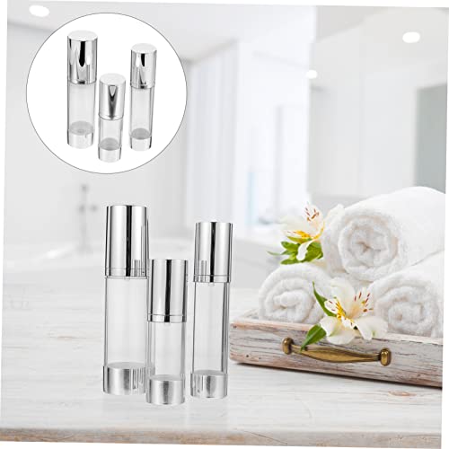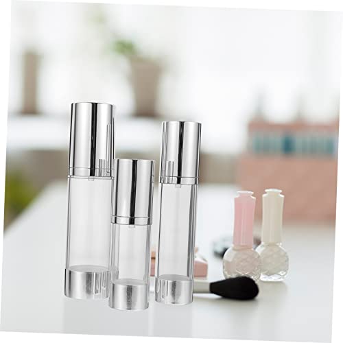 FOMIYES - فوميز. مجموعة زجاجات لوشن مفرغة من الهواء من 3 قطع، مجموعة مستحضرات العناية بالبشرة مناسبة للسفر، حاويات صغيرة مع اغطية، زجاجات لوشن فارغة، برطمان كريم، موزع زجاجات مفرغة من الهواء بحجم مناسب للسفر،