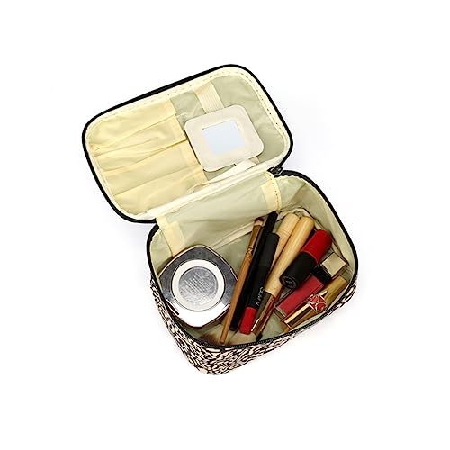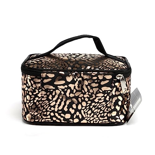 - حاوية مكياج بسحاب للنساء -- نمط جلد الفهد وتصميم سحاب من خليط معدني، مما يجعل هذه الحقيبة أكثر جاذبية وستلفت الأنظار بين الناس. يسهل تنسيقه مع نمط الملابس اليومية للنساء.