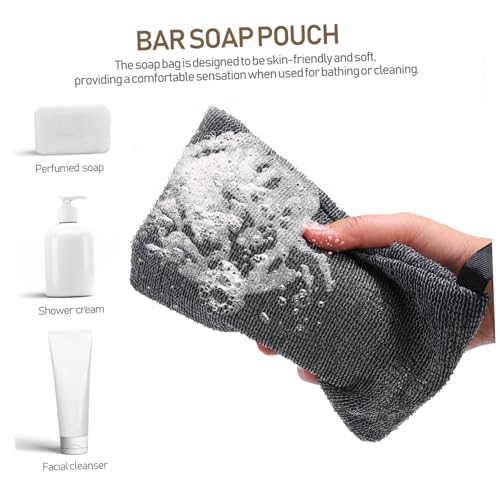 - حاوية الصابون: مادة ناعمة: كيس الصابون مصنوع من مادة النايلون، ناعم وخفيف الوزن ومريح في الاستخدام، مما يضمن تجربة ممتعة، كيس صابون.