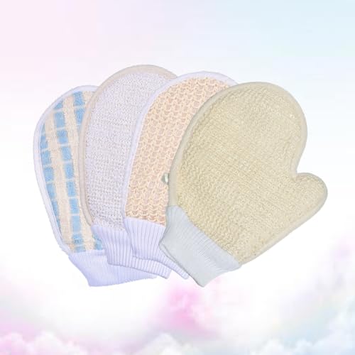 FOMIYES - فوميز. 4 قطع من قفازات فرك الجسم من نوع القفازات، مناشف حمام وخدر نباتي، مناشف استحمام وفرشاة استحمام نظيفة مصنوعة يدويا