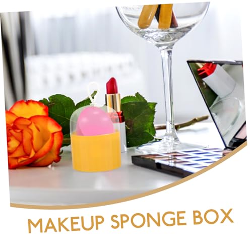 FOMIYES - فوميز. صندوق تخزين بيض التجميل من 4 قطع، اسفنجة مكياج واسفنجات للوجه لوضع البودرة واسفنجة المكياج، حافظة تخزين اسفنجة المكياج، حافظات مزج المكياج، حوامل اسفنجات التجميل من البولي بروبلين، أصفر