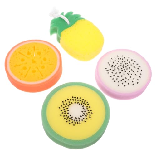 FOMIYES - فوميز. 4 قطع من اسفنجات الاستحمام على شكل فاكهة لتقشير الجسم وتقشير الجسم وتقشير الجسم، اسفنجة استحمام للنساء، اسفنجة تنظيف سميكة للجسم