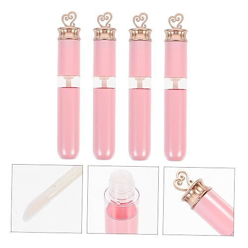 FOMIYES - فوميز. 4 قطع من انابيب ملمع الشفاه الفارغة، حاويات مكياج وردية، حاويات لوشن للسفر، قارورة ملمع الشفاه واحمر الشفاه، انابيب فارغة لعينات الزيت، زجاجات صغيرة فارغة لملمع الشفاه، زجاجات فارغة