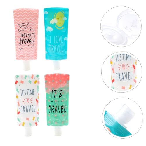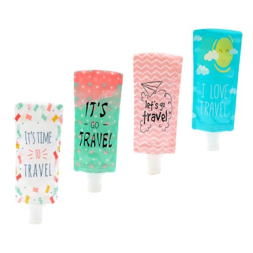 FOMIYES - فوميز. 4 قطع من حقائب اللوشن والشامبو للسفر، حقيبة قابلة لإعادة الملء، حقيبة موزع أدوات الزينة، حقيبة بلاستيكية للسفر، حقيبة تخزين اللوشن، حقيبة موزع الشامبو، حقيبة سفر فارغة، ألوان متنوعة