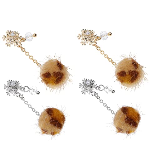 FOMIYES - فوميز. 4 قطع لتزيين الاظافر والمجوهرات على شكل فيونكة، سلسلة زينة للاظافر، دلايات لامعة للاظافر، دلايات تزيين الاظافر على شكل كرة قطيفة، مجوهرات مخملية وخاتم زركون، ألوان متنوعة، فراء صناعي