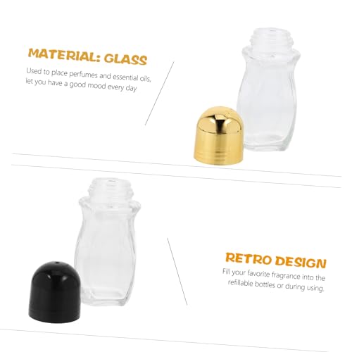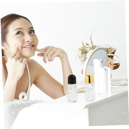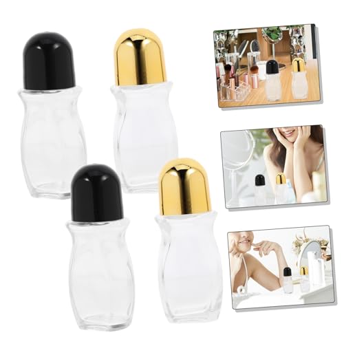 FOMIYES - فوميز. 4 قطع من زجاجات العطور ومستحضرات التجميل للسفر، حاويات زجاجية شفافة، زجاجات دوارة محمولة، زجاجات عطر صغيرة، زجاجة دوارة زجاجية للزيوت العطرية، عبوة زجاجية دوارة باللون الاسود، بلاستيك