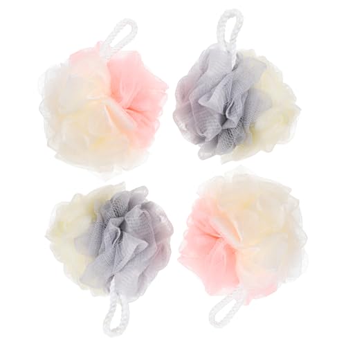 FOMIYES - فوميز. 4 قطع من كرات الاستحمام لتقشير الجسم، ليفة الاستحمام، ليفة استحمام لتنظيف الجسم، كرات رغوية، كرات ليفة منزلية، منتجات حمام كبيرة من القماش، 4 قطع